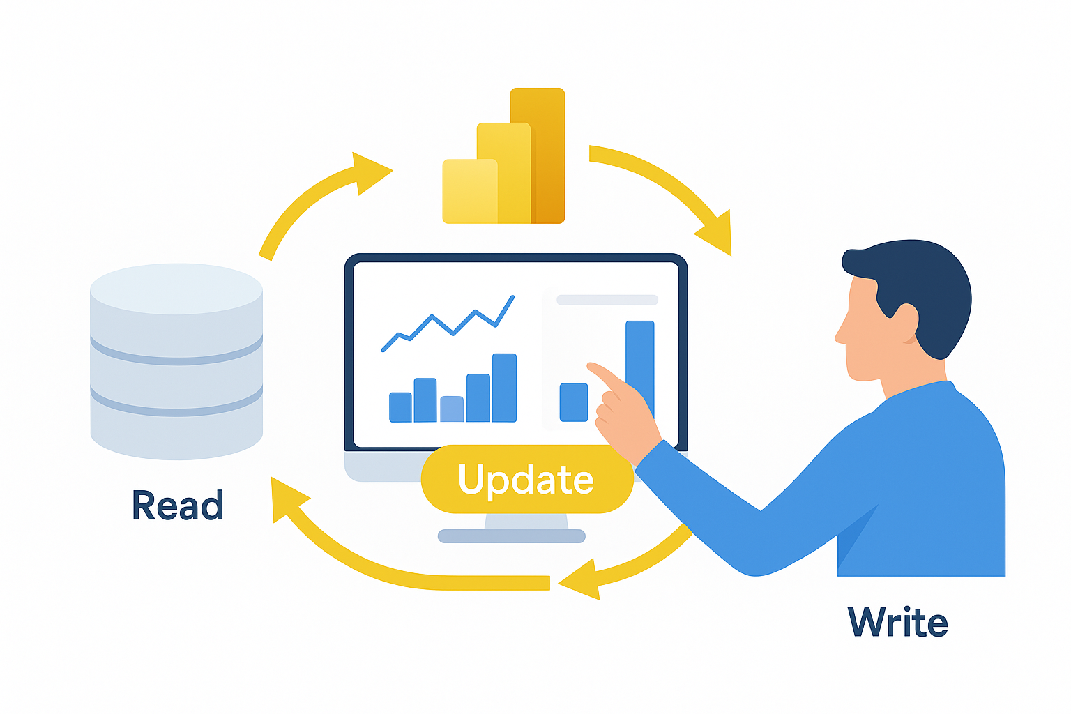 Power BI is read-first by design — there’s no out-of-the-box writeback that lets a report directly save changes into your database or dataset. To enable writeback, you add a governed write layer alongside Power BI. In practice, most organizations use one of three methods: